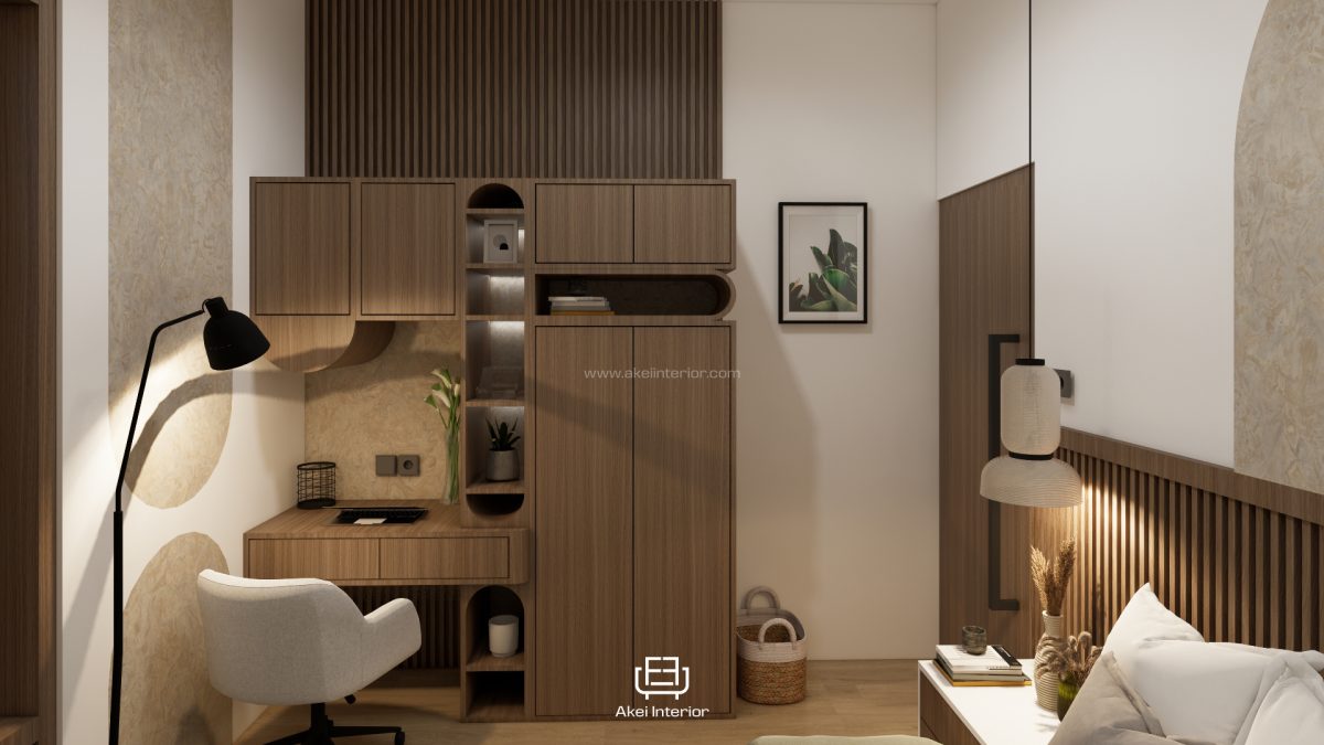 Akei Interior mempersembahkan karya interior untuk Ibu Mutia di Bantul yang menggabungkan gaya Japandi (Japanese–Scandinavian) dengan sentuhan tropis modern. Konsep ini menonjolkan kesederhanaan yang elegan, penggunaan material natural yang mudah dirawat, serta tata ruang yang mendukung pencahayaan alami dan sirkulasi udara. Setiap sudut rumah dirancang untuk mendukung aktivitas keluarga sekaligus menghadirkan suasana hangat, lapang, dan nyaman bagi penghuninya.